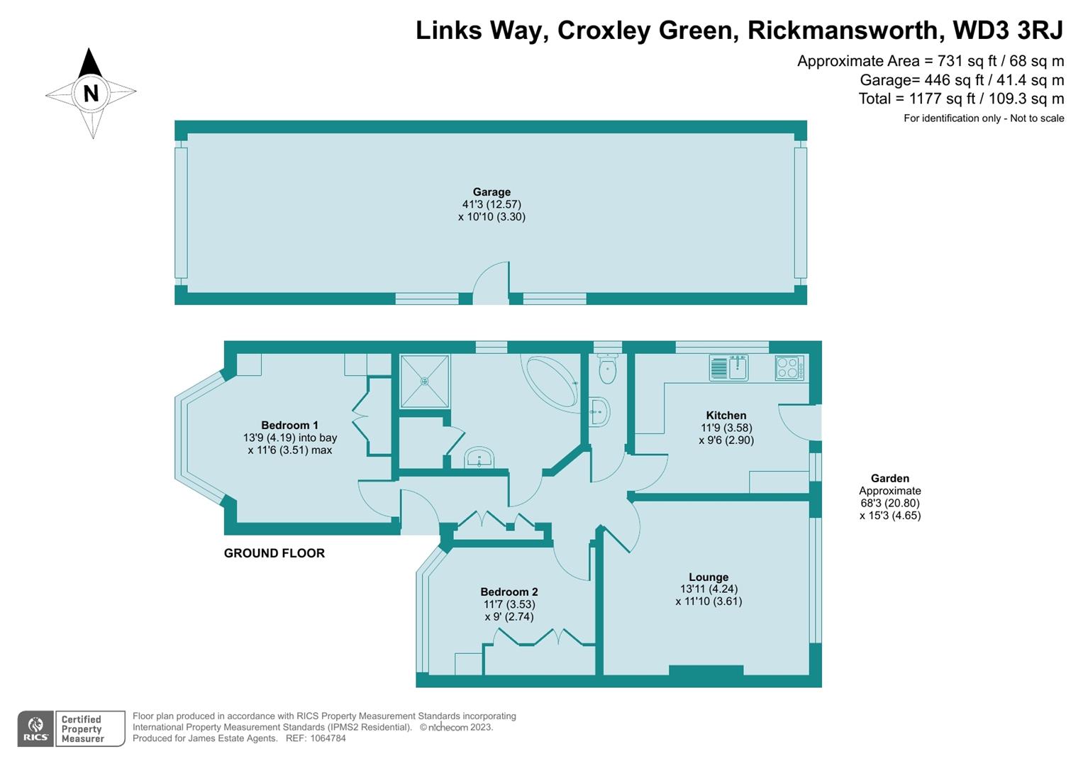 A well presented two bed semi-detached bungalow. Just a short walk to local shops and Croxley Danes school. Living room, fitted kitchen with appliances, two good sized bedrooms with fitted wardrobes, family bathroom with a large jacuzzi bath, sauna and a modern shower. a separate WC. Garden. Double length garage workshop with solar panels, roller shutter doors to front and rear. EPC rating C. Unfurnished. Available 2 January.